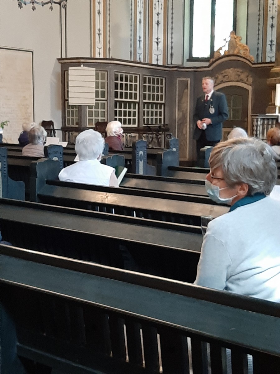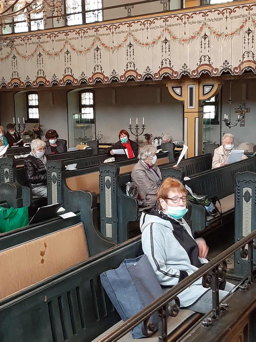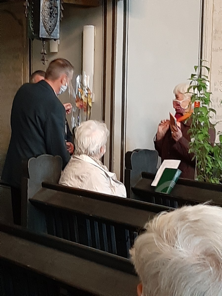 Am Geburtstag dann versammelten sich 35 Lerchen und eine kleine Abordnung des Männerchores in der Kirche mit dem gebotenen Abstand von 2m in alle Richtungen und Gesichtsmasken.